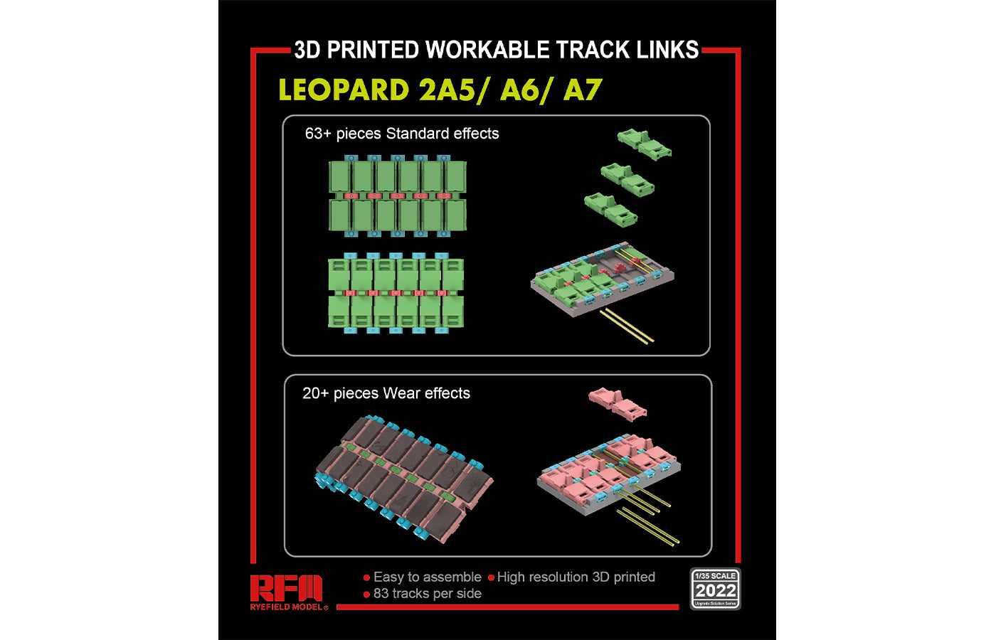 Rye Field Models 2022 1/35 scale Leopard 2A5/A6/A7 3D Printed Workable Track Links