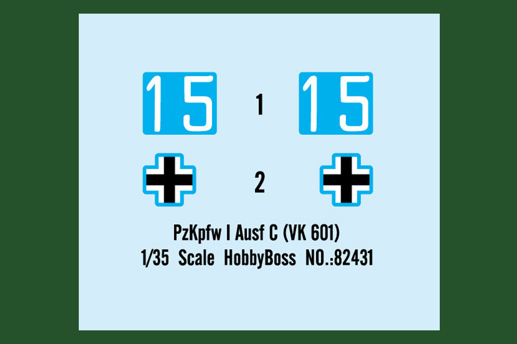 Hobby Boss 82431 1/35 scale PzKpfw.I Ausf.C (VK 601). This kit includes parts for the assembly of one plastic model kit. The set requires both glue and paint in order to be completed. Paints and glue are not included. For modelers aged 14 and older