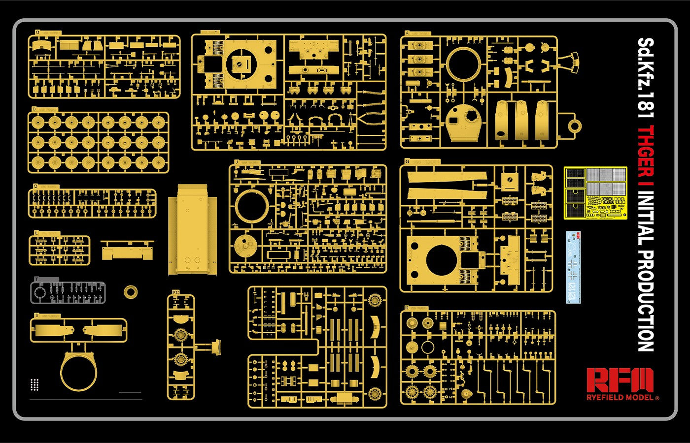 Rye Field Models 5078 1/35 scale Sd.Kfz.181 Tiger I Initial Prod. Leningrad 1943. This kit includes parts for the assembly of one plastic model kit. The set requires both glue and paint in order to be completed. Paints and glue are not included. For modelers aged 14 and older