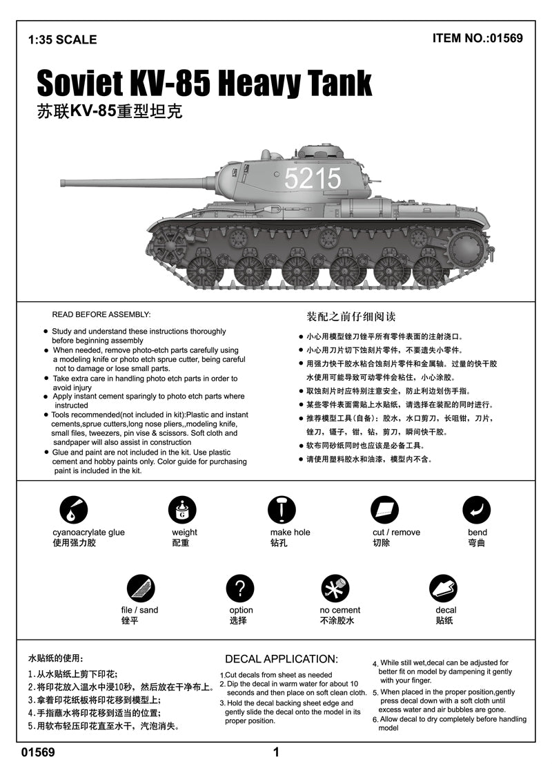 Trumpeter 1569 1/35 scale Soviet KV-85 Heavy Tank.