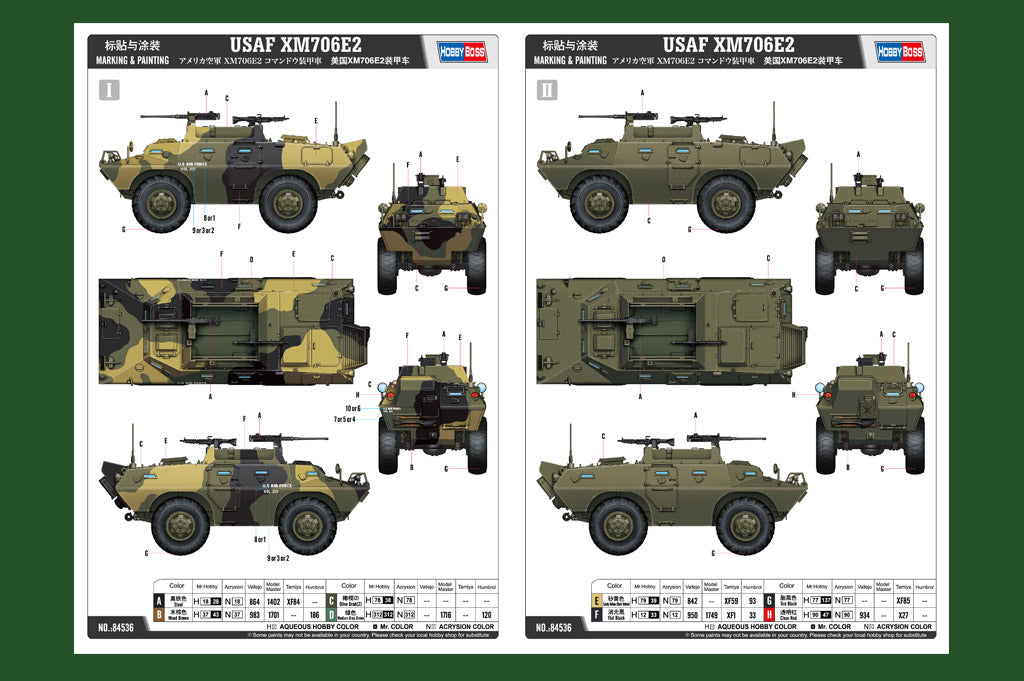 Hobby Boss 84536 1/35 scale USAF XM706E2. This kit includes parts for the assembly of one plastic model kit. The set requires both glue and paint in order to be completed. Paints and glue are not included. For modelers aged 14 and older