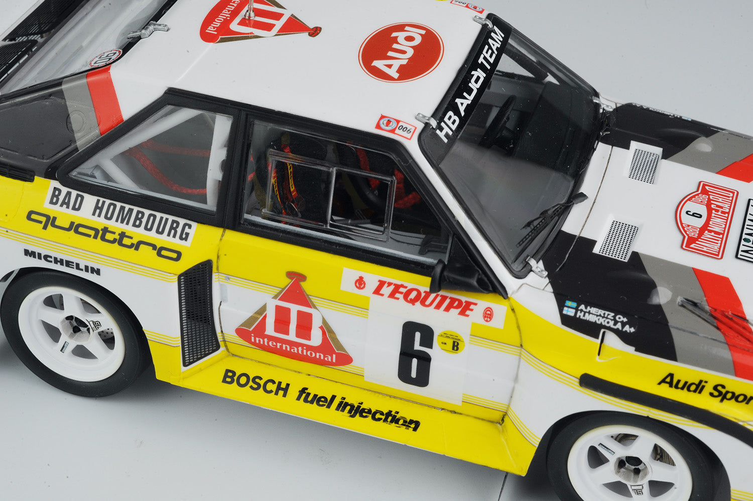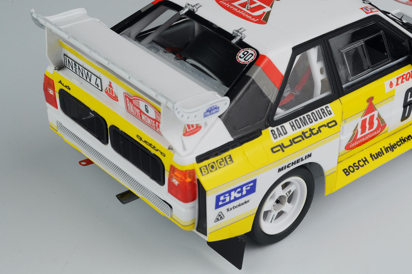 Platz BX24035 1/24 scale Audi Sport Quattro S1 [E2] '86 Monte Carlo Rally. This kit includes parts for the assembly of one plastic model kit. The set requires both glue and paint in order to be completed. Paints and glue are not included. For modelers aged 14 and older