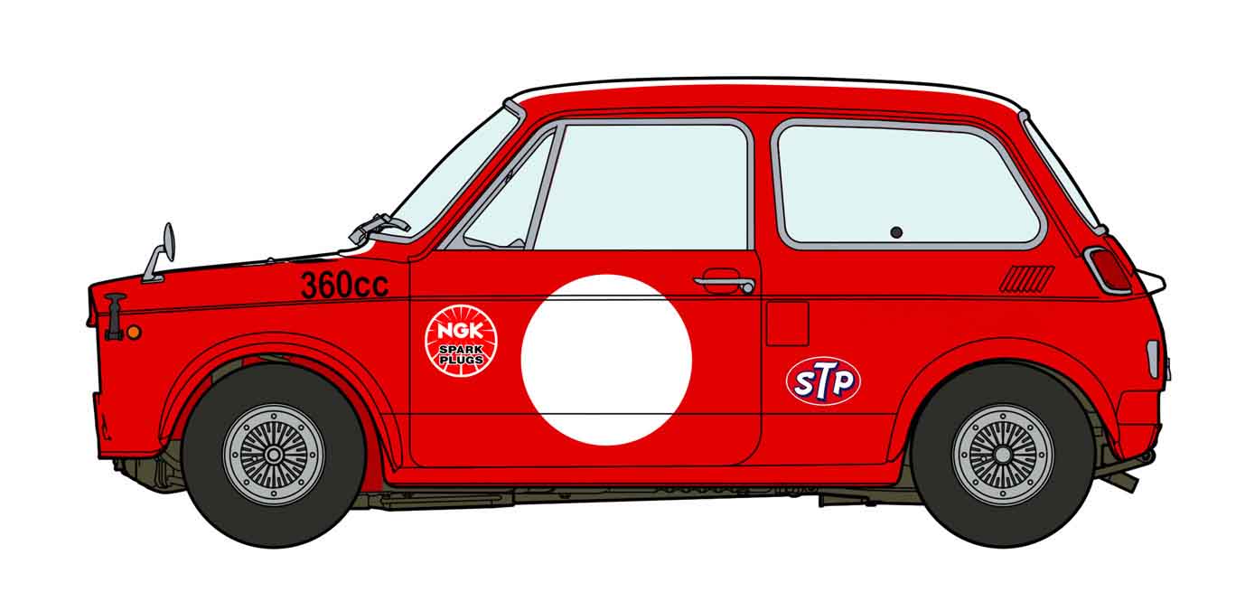 Hasegawa 20513 1/24 scale Honda N360 NI Race Configuration Part 2. This kit includes parts for the assembly of one plastic model kit. The set requires both glue and paint in order to be completed. Paints and glue are not included. For modelers aged 14 and older