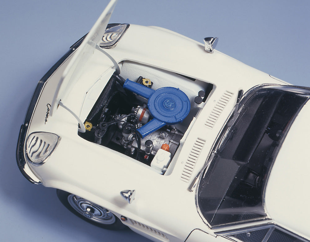 Hasegawa 51046 1/24 scale Mazda Cosmo Sport with Metal Engine Details. This kit includes parts for the assembly of one plastic model kit. The set requires both glue and paint in order to be completed. Paints and glue are not included. For modelers aged 14 and older