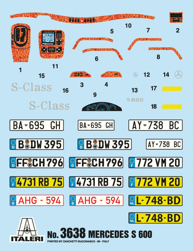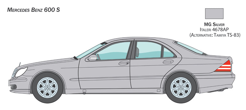 Italeri 3638 1/24 scale Mercedes Benz 600S. This kit includes parts for the assembly of one plastic model kit. The set requires both glue and paint in order to be completed. Paints and glue are not included. For modelers aged 14 and older
