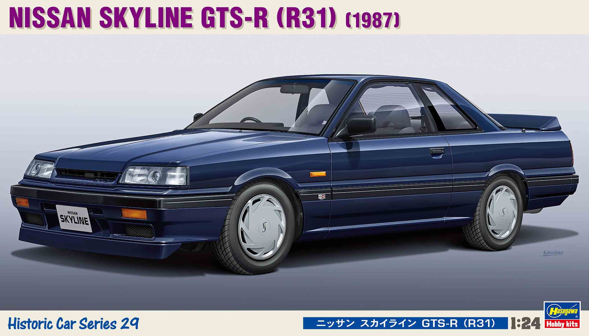 Hasegawa 21129 1/24 scale Nissan Skyline GtS-R R31 1987. This kit includes parts for the assembly of one plastic model kit. The set requires both glue and paint in order to be completed. Paints and glue are not included. For modelers aged 14 and older