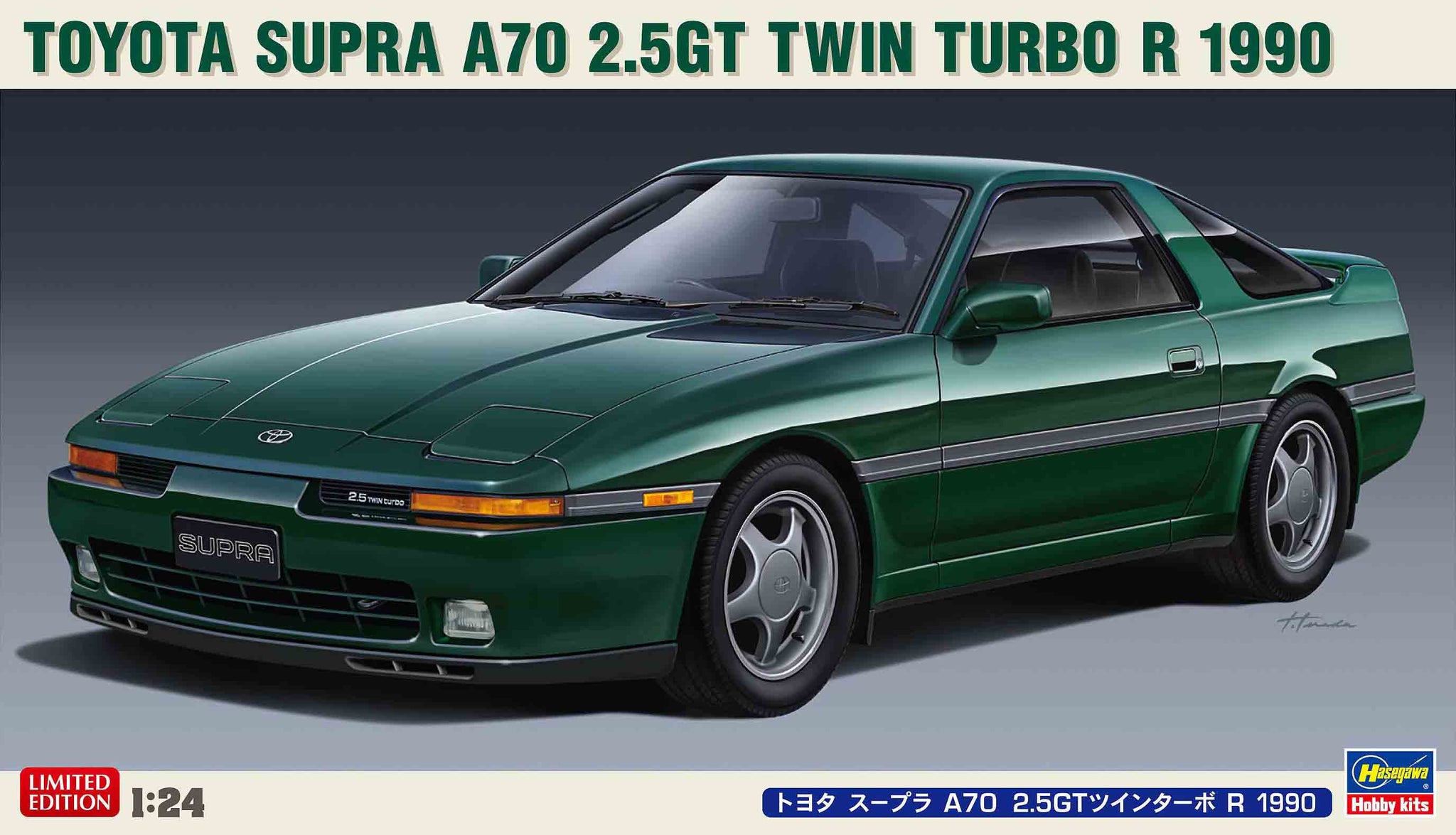 Hasegawa 20538 1/24 scale Toyota Supra A70 2.5GT Twin Turbo R 1990. This kit includes parts for the assembly of one plastic model kit. The set requires both glue and paint in order to be completed. Paints and glue are not included. For modelers aged 14 and older