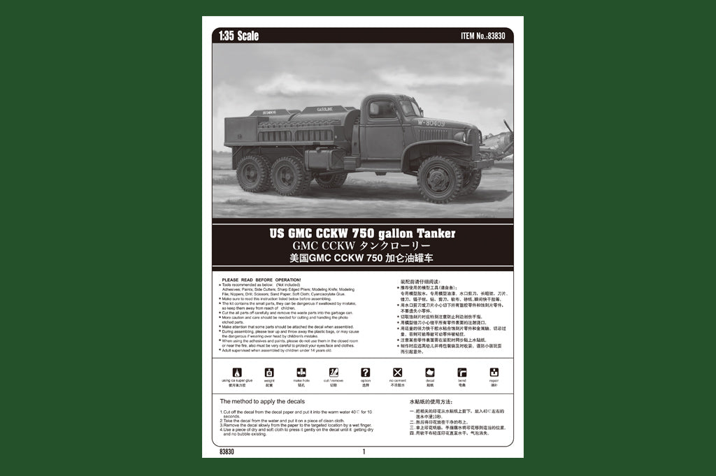 • description_tag: Hobby Boss 83830 1/35 scale GMC CCKW 750 Gallon Tanker