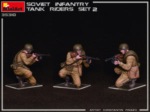 Miniart 35310 1/35 Soviet Infantry Tank Riders Set 2. This kit includes parts for the assembly of one plastic model kit. The set requires both glue and paint in order to be completed. Paints and glue are not included. For modelers aged 14 and older