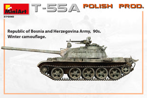 Miniart 37090 1/35 scale T55A Polish Production. This kit includes parts for the assembly of one plastic model kit. The set requires both glue and paint in order to be completed. Paints and glue are not included. For modelers aged 14 and older