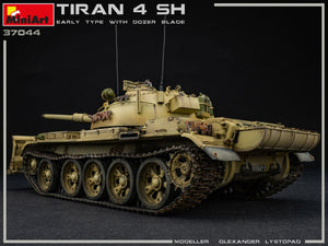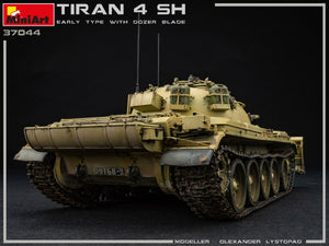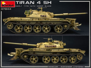 Miniart 37044 1/35 scale Tiran 4 Sharir Early Type w/ Dozer Blade. This kit includes parts for the assembly of one plastic model kit. The set requires both glue and paint in order to be completed. Paints and glue are not included. For modelers aged 14 and older