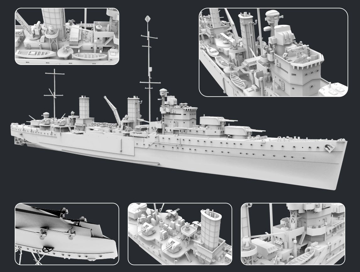 Flyhawk 1109S 1/700 scale HMS Penelope 1940 (Deluxe Edition). This kit includes parts for the assembly of one plastic model kit. The set requires both glue and paint in order to be completed. Paints and glue are not included. For modelers aged 14 and older