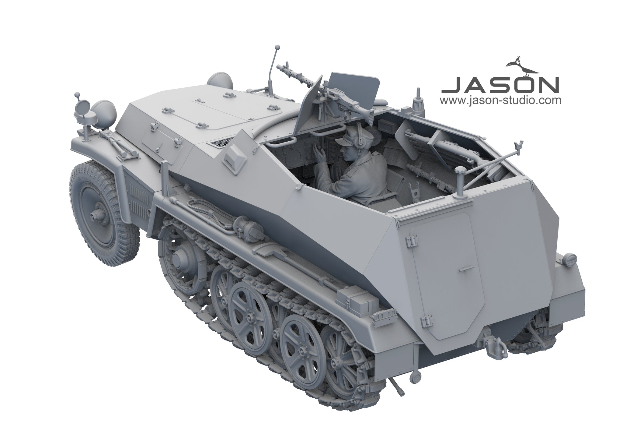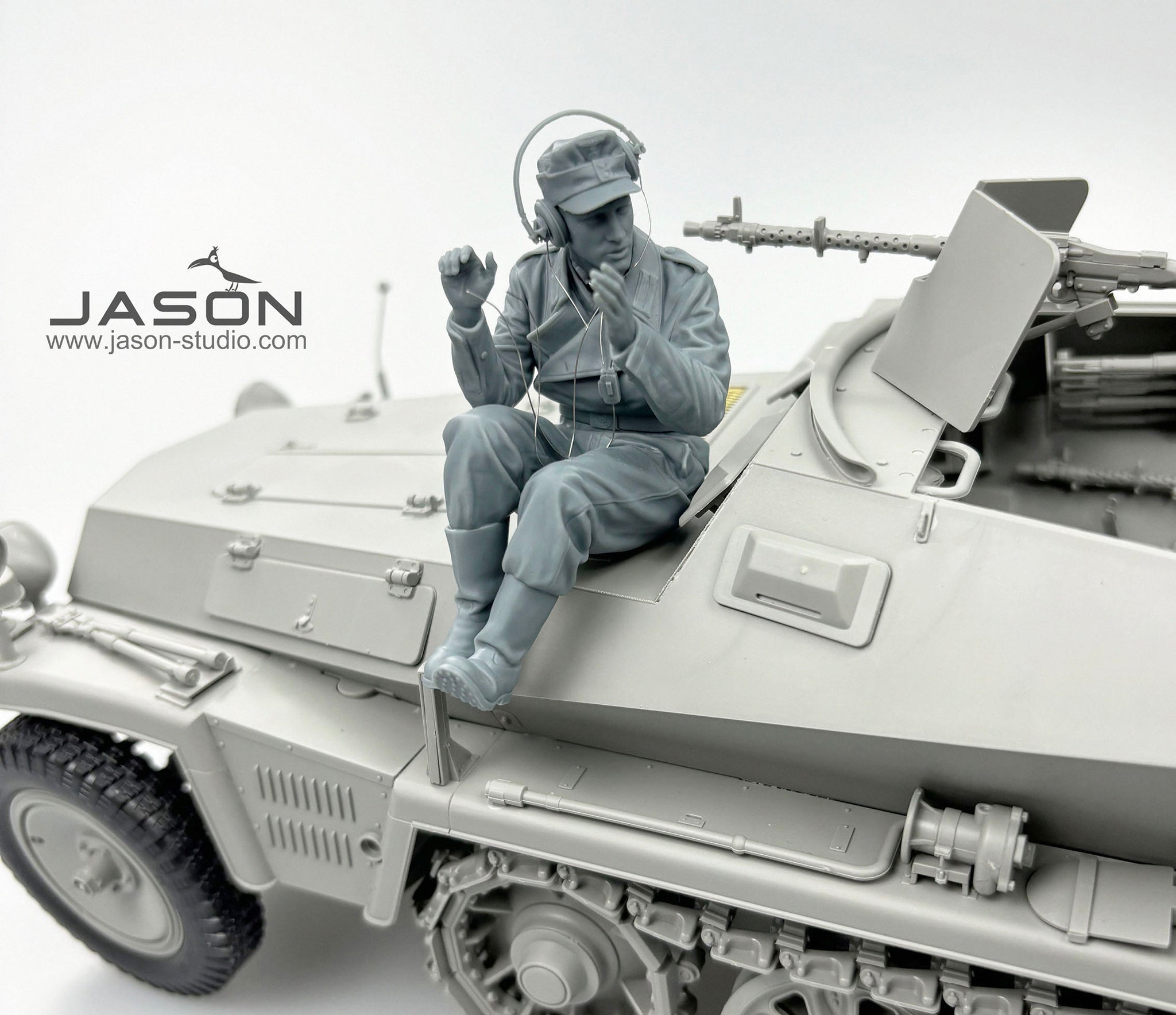 Jason Studio 16030 1/16 scale German Sd.Kfz. 250/1 Ausf.A Half Track Radio Operator. This kit includes parts for the assembly of one plastic model kit. The set requires both glue and paint in order to be completed. Paints and glue are not included. For modelers aged 14 and older