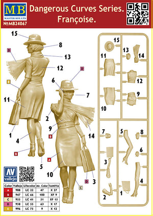 Master Box 24067 1/24 Dangerous Curves Series. Francoise. This kit includes parts for the assembly of one plastic model kit. The set requires both glue and paint in order to be completed. Paints and glue are not included. For modelers aged 14 and older