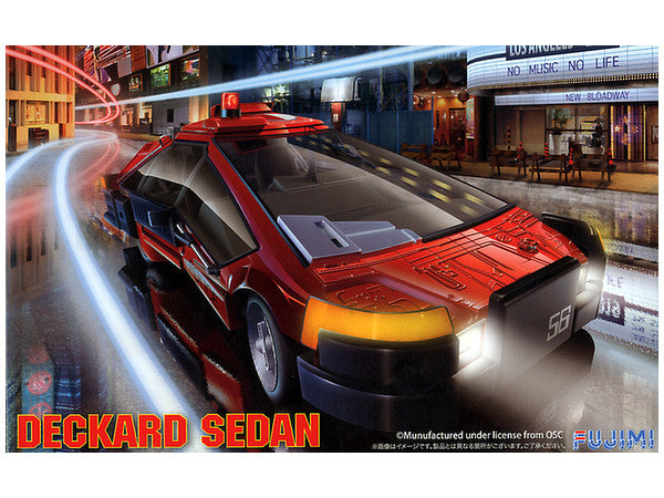 Fujimi 91358 1/24 scale Deckard Sedan. This kit includes parts for the assembly of one plastic model kit. The set requires both glue and paint in order to be completed. Paints and glue are not included. For modelers aged 14 and older