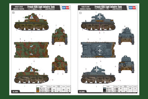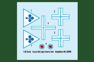 Hobby Boss 83806 1/35 scale French R35 Light Infantry Tank. This kit includes parts for the assembly of one plastic model kit. The set requires both glue and paint in order to be completed. Paints and glue are not included. For modelers aged 14 and older
