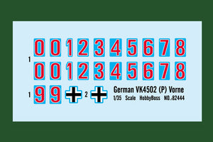 Hobby Boss 82444 1/35 scale German VK4502 (P) Vorne. This kit includes parts for the assembly of one plastic model kit. The set requires both glue and paint in order to be completed. Paints and glue are not included. For modelers aged 14 and older