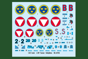 Hobby Boss 81745 1/48 scale J29F Tunnan. This kit includes parts for the assembly of one plastic model kit. The set requires both glue and paint in order to be completed. Paints and glue are not included. For modelers aged 14 and older
