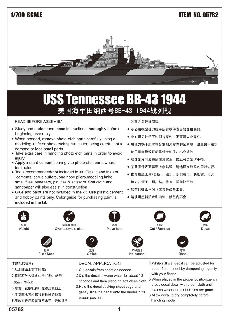 Trumpeter 5782 1/700 scale USS Tennessee BB 43 Battleship 1944.