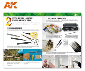 AK Interactive Books 295 Mastering Vegetation in Modeling. The artists that have taken part in this book show you all aspects, tricks and secrets involved to make vegetation in dioramas. Follow this essential guide in form of simple step by step processes and learn useful information that any kind of modeller, beginner or advanced, will find interesting for their projects on dioramas and vignettes in any scale. This book is profusely illustrated with step by step photos and descriptive text explaining in depth the secrets of creation vegetation and environments and the materials and tools involved. This is another essential issue of our Learning Series books, which have already become a classic within the history of modeling. Become a vegetation expert! 84 Pages