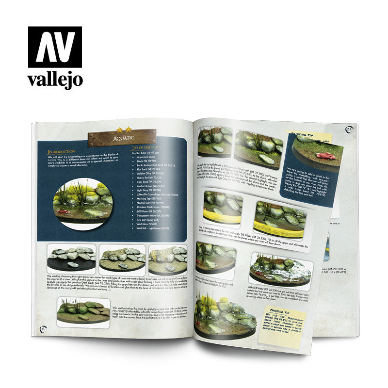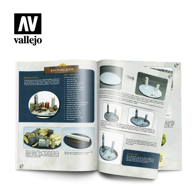 Vallejo 75045 Painting War: Bases. In this Painting WAR issue, the renowned painter Alberto Mateos Jurado, from Avahn Art Studio, shares different techniques focused on the creation of bases for wargames. The issue presents building and painting techniques that can be used on different themed bases, such as sci-fi, fantasy and historical. Each base is sorted by levels of difficulty, which helps the reader to identify its complexity before starting the painting process. Furthermore, some techniques to create bases in a fast and easy way can also be found, allowing the modeler to achieve outstanding results in a short time. 64 pages