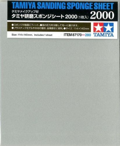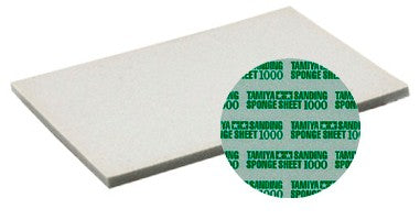 Attached to a flexible sponge base, the abrasive coat of this sanding sheet is well-suited for removing protrusions on plastic models and also finishing materials such as wood and metal. The sponge's flexibility allows even finishing of curved surfaces and hard-to-reach corners. This item can be easily cut into the desired shape/size using a modeling knife. Note: Suitable for wet sanding use. Tamiya Sanding Sponge Sheet x1, Dimensions: 114 x 140mm, Abrasive material: Aluminum oxide, Sponge thickness: 5mm, nine different levels of abrasion available (Each sold separately): 180, 240, 320, 400, 600, 1000, 1500, 2000, 3000