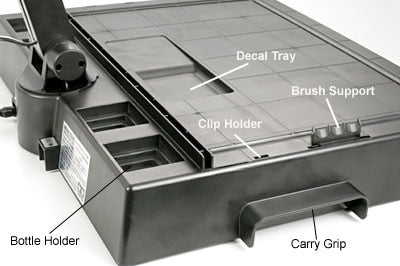 Tamiya 74064 Work Station with Magnifying Lens. Featuring a large acrylic magnifying lens with 2X magnification, you will be seeing all that small detailing so much clearer, making it easy to work long hours on your favorite model. To make sure you always have perfect lighting in the place where you need it most, 6 white LED lamps are installed just behind the magnifying lens. Powered by 4 D batteries you will have more than 150 hours of perfect white light. The lens and light are mounted on a handy adjustable arm which is connected to the work base, a work space specially designed for Tamiya modelers. Some of the handy functions featured include a frame on the base designed to perfectly fit Tamiya"s A4 size Cutting Mat, 5 clip holders on both left and right sides, a decal tray to be filled with water and used when applying decals, a back board to prevent parts from flying off when cutting away from sprues, 4 bottle holders that are specially designed to fit Tamiya cement, acrylic paint and enamel paint bottles, 3 paint brush holders and a handy carry grip for easy mobility. Although specially designed for Tamiya modelers, this handy work place is perfect for any type of fine work requiring good light and clear vision. From all types of arts and crafts such as carving, painting, embroidery and beading to handy everyday uses, the possibilities are truly limitless. Although you may power your workstation with 4 D batteries for up to 150 hours, you may want to plug it into to AC power. If you are in need for a AC adapter to power your workstation, please visit your local electronics store for a 6VDC 800mA AC/DC converter. Most of these units are supplied with multiple size plugs and one will fit the socket on your workstation. Large magnifying lens (15x10cm) to make working on small parts easy. Two adjustable arms to move lens to best position. 6 white LED lights for extra lighting. LED lights require batteries or adaptor (sold separately). Bottle holder specially designed to fit Tamiya cement, acrylic paint and enamel paint bottles. Brush and clip holders. Handy carry grip for easy mobility. Overall dimensions of base: 43x36x7cm