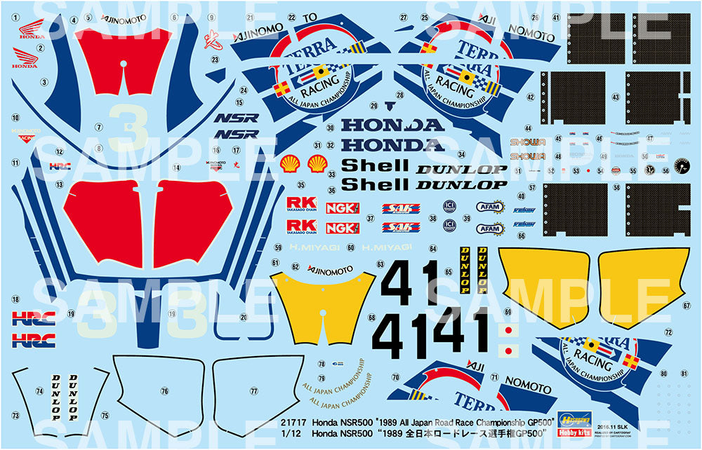 Hasegawa 21717 1/12 scale Honda NSR500 1989 Japan Race Championship GP500. This kit includes parts for the assembly of one plastic model kit. The set requires both glue and paint in order to be completed. Paints and glue are not included. For modelers aged 14 and older
