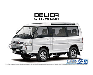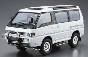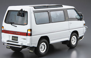Aoshima 61398 1/24 scale Mitsubishi Delica Star Wagon '91. This kit includes parts for the assembly of one plastic model kit. The set requires both glue and paint in order to be completed. Paints and glue are not included. For modelers aged 14 and older