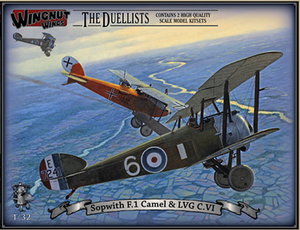 Wingnut Wings 32803 1/32 scale Sopwith F.1 Camel & LVG C.VI "The Duellists". This kit includes parts for the assembly of two plastic model kits. The set requires both glue and paint in order to be completed. Paints and glue are not included. For modelers aged 14 and older