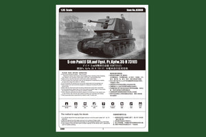 Hobby Boss 83808 1/35 scale 5 cm Pak(t) Sfl.auf Fgst. Pz.Kpfw.35 R 731(f). This kit includes parts for the assembly of one plastic model kit. The set requires both glue and paint in order to be completed. Paints and glue are not included. For modelers aged 14 and older