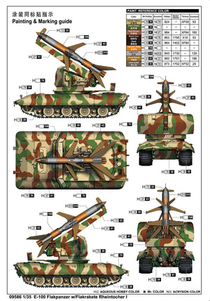Trumpeter 9586 1/35 scale E100 Flakpanzer w/Flakrakete Rheintocher I. This kit includes parts for the assembly of one plastic model kit. The set requires both glue and paint in order to be completed. Paints and glue are not included. For modelers aged 14 and older