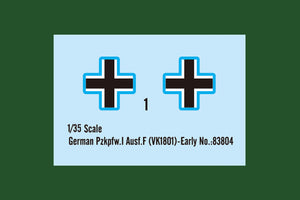 Hobby Boss 83804 1/35 scale German Pzkpfw.I Ausf.F VK1801 Early. This kit includes parts for the assembly of one plastic model kit. The set requires both glue and paint in order to be completed. Paints and glue are not included. For modelers aged 14 and older