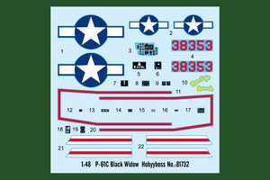 Hobby Boss 81732 1/48 scale P61C Black Widow. This kit includes parts for the assembly of one plastic model kit. The set requires both glue and paint in order to be completed. Paints and glue are not included. For modelers aged 14 and older