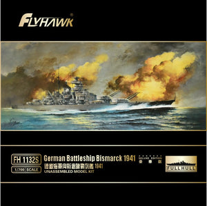 Flyhawk 1132S 1/700 scale German Battleship Bismarck 1941 (Deluxe Edition). This kit includes parts for the assembly of one plastic model kit. The set requires both glue and paint in order to be completed. Paints and glue are not included. For modelers aged 14 and older