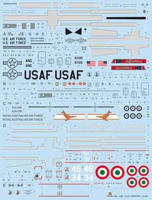 Italeri 1450 1/72 scale C27J SPARTAN / G222. This kit includes parts for the assembly of one plastic model kit. The set requires both glue and paint in order to be completed. Paints and glue are not included. For modelers aged 14 and older